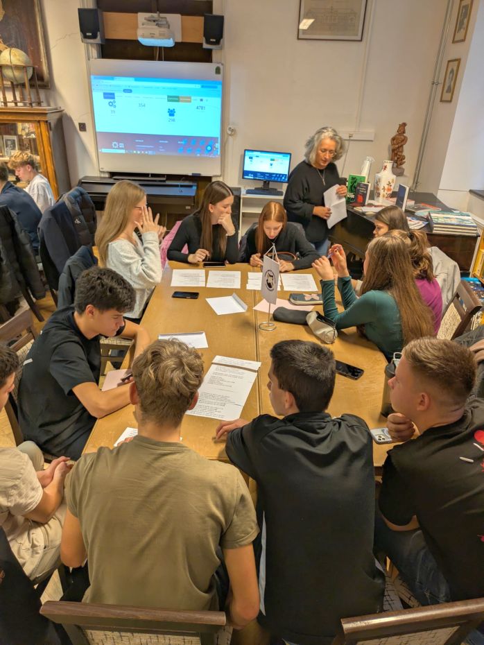 Knausz-Tuboly Tímea tanárnő 10. N és 10. D osztályos tanulói az olasz nemzeti identitás témakörében, interaktív tanórán vehettek részt, mely során fordító program,