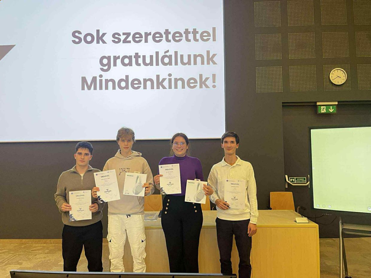 1. helyezett csapat: Komlósi Ádám, Kovács Noémi, Süle Olivér Gábor, Szabó Örs Zolta 11.B