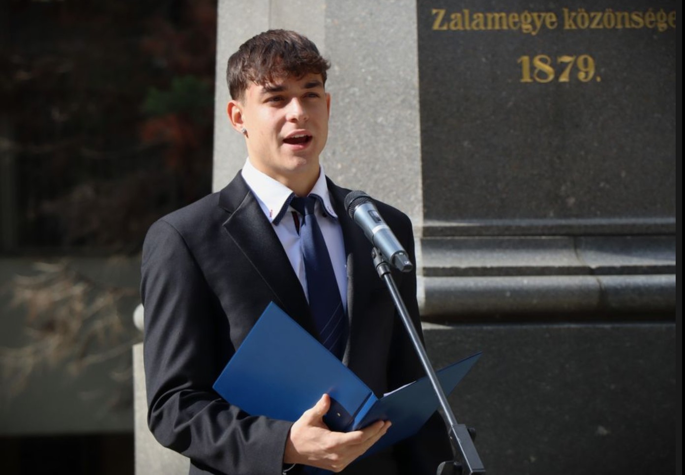 (a Keresztury Emlékbizottság tagja), Stárics Roland igazgatóhelyettes úr és Kovács Noémi, a diákönkormányzat képviselője helyezett el koszorút a gimnázium közössége nevében Zalaegerszeg