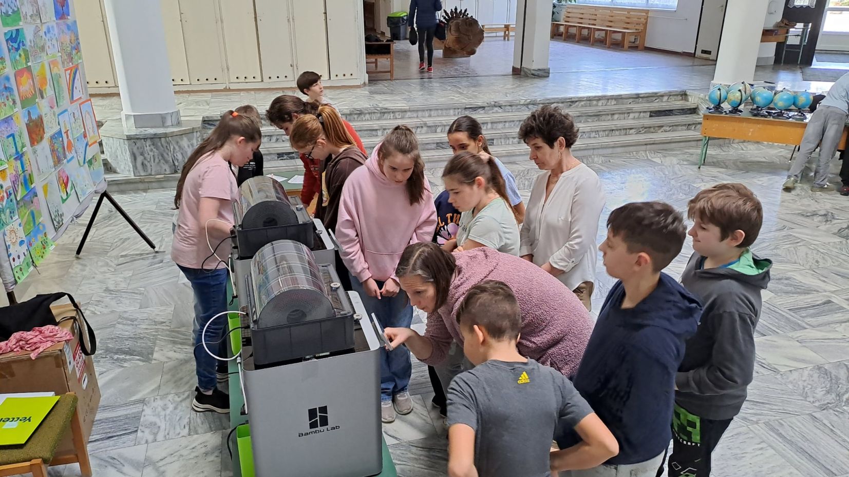 A felvételizőket az iskola főbejáratánál kollégáink és diákjaink várják, majd a terembe kísérik őket.