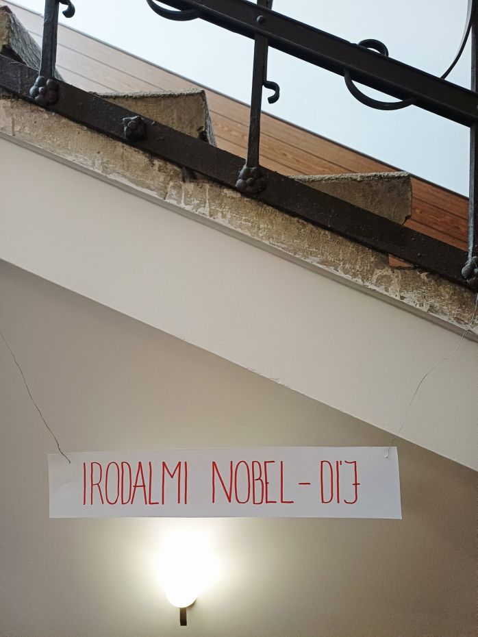 Az ünnep az iskola közösségi tereiben is jelen volt. Dienes Gyula és tanítványai különleges installációval készültek: Krasznahorkai László monumentális mondatai díszítették a lépcsőkorlátokat, vizuálisan is megidézve az irodalmi hömpölygést. Emellett a mai napon minden magyarórát a stockholmi beszéd felolvasása tett még ünnepélyesebbé, a szerző irodalmi Nobel-díja apropóján.