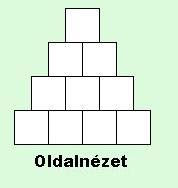 2. Kis kockákból piramisszerű testet építünk.Maximálisan hány kockát használtunk fel,ha az építmény három nézetea következő ábrákon látható? |