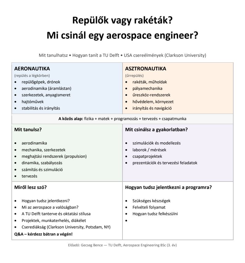 MEGHÍVÓ Gecseg Bence (egykori tanítványunk) Mit csinál egy aerospace engineer? című előadására