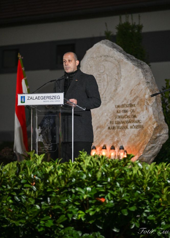 (a Keresztury Emlékbizottság tagja), Stárics Roland igazgatóhelyettes úr és Kovács Noémi, a diákönkormányzat képviselője helyezett el koszorút a gimnázium közössége nevében Zalaegerszeg