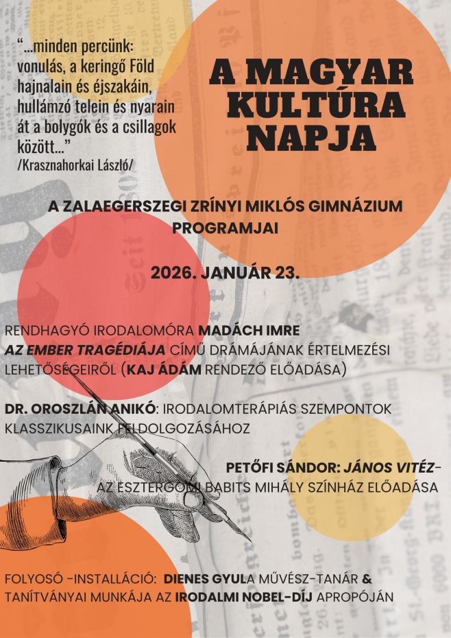 Kultúra napi kavalkád a Zrínyiben: Madách, Petőfi és Krasznahorkai nyomában