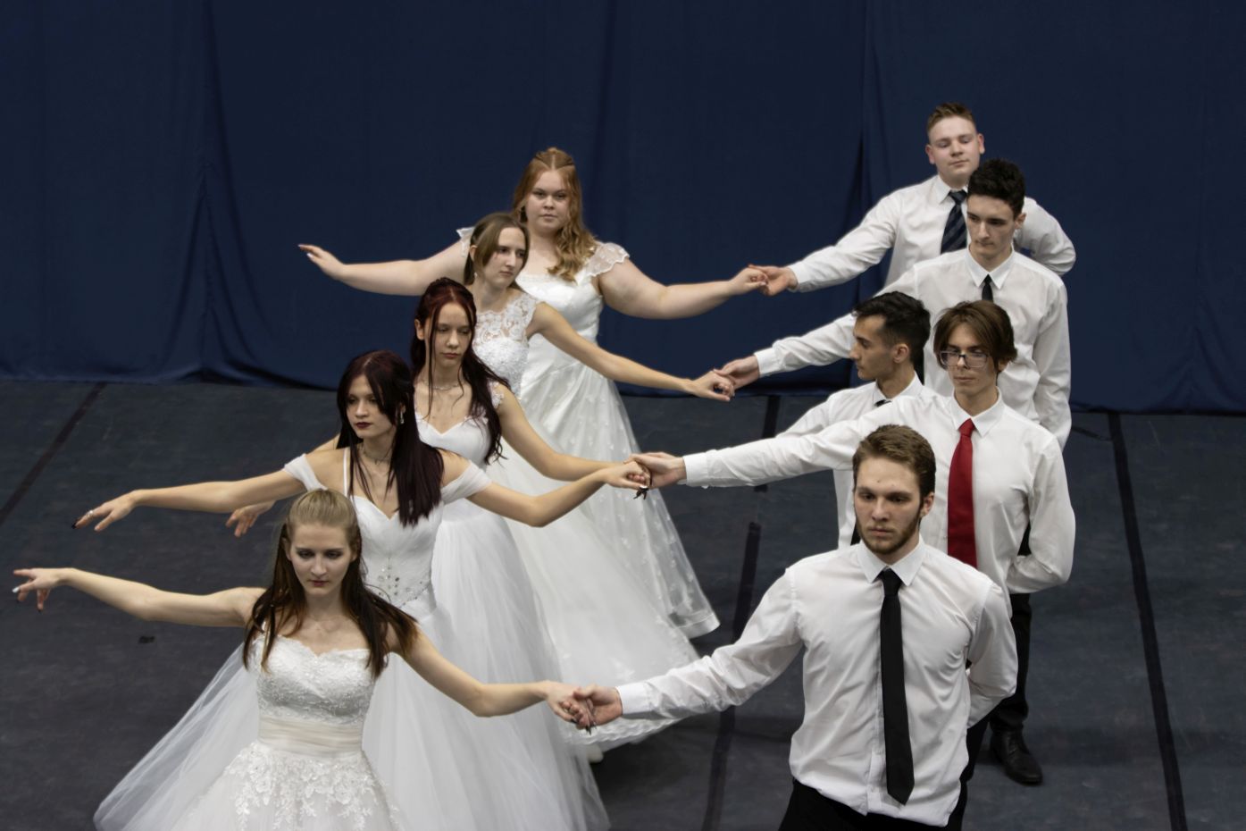 gimnázium egykori diákja, Borsos Anna, a nevelőtestület tánckara, és a