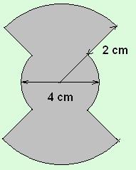 5. Hányszorosa az ábrán látható alakzat területe egy 2 cm sugarú kör területének?(Az alakzatot negyedkörívek és egyenes szakaszok határolják, a méretek az ábráról leolvahatók.) |